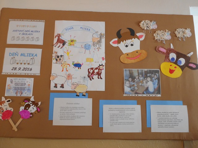28. septembra 2016 sme si aj na našej škole pripomenuli svetový deň mlieka na školách. Deti si priniesli mliečne výrobky a mlieko, na ktorých si pochutnali. S veľkou chuťou sme si potom nakreslili kravičky.