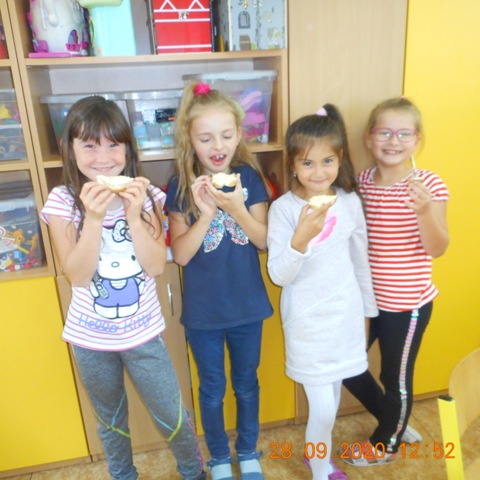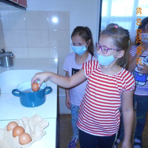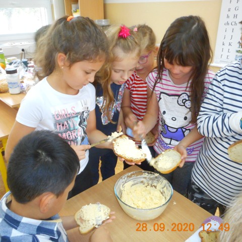 V pondelok 28. 9. 2020 sa deti z 5. oddelenia zapojili do súťaže Hovorme o jedle. Témou dňa boli vajíčka, a aby to nebolo len rozprávanie, tak si druháci pripravili vajíčkovú nátierku. Vajíčka uvarili, ošúpali, potreli, vymiešali, natreli na chlieb a zjedli. Mňam!