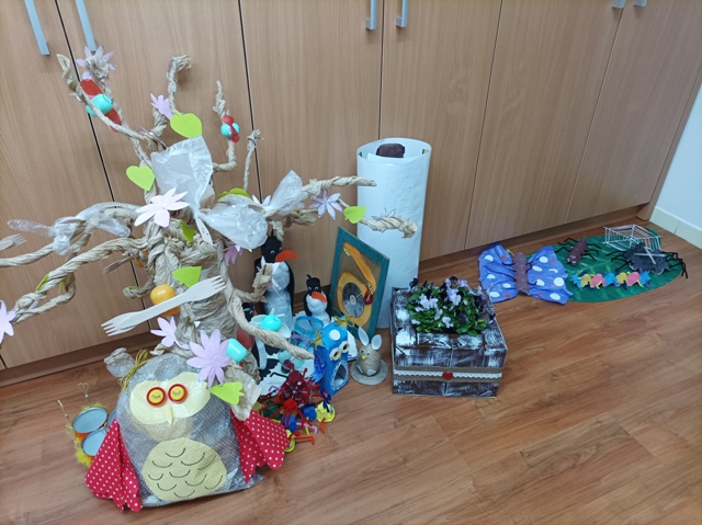 Deti zo školského klubu vyrobili výrobky z triedeného odpadu. Svoju tvorivosť deti a pani vychovávateľky predviedli v plnej kráse.